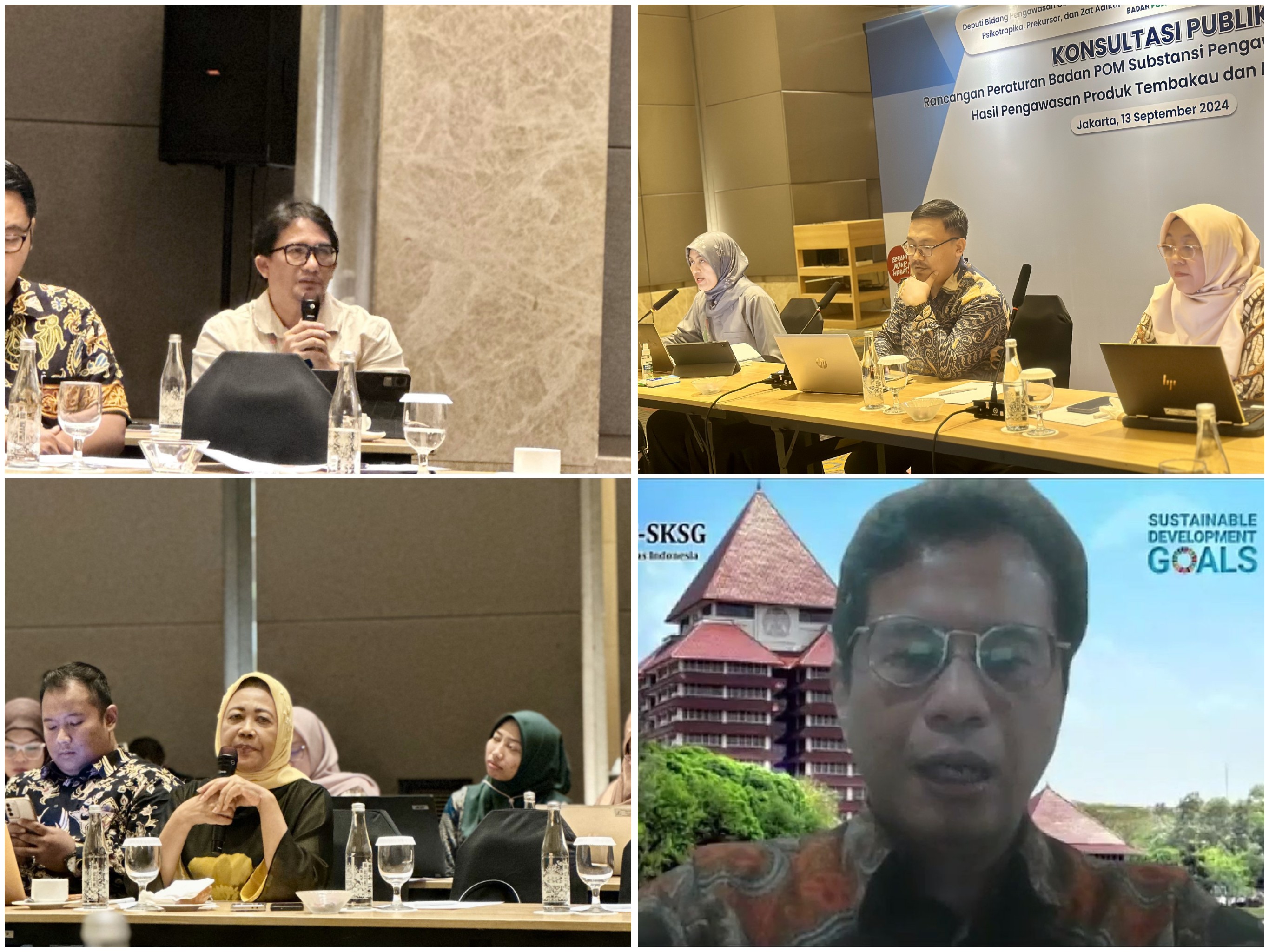Sebagai bentuk pengelolaan kebijakan yang baik, Badan POM senantiasa memutakhirkan peraturan sesuai dengan perkembangan kebutuhan hukum dan perubahan ketentuan peraturan perundang-undangan terkait lainnya agar senantiasa harmonis. Untuk itu, saat ini Badan POM sedang menyusun Rancangan Peraturan Badan POM tentang Pengawasan Peredaran Produk Tembakau dan Rokok Elektronik. Bersamaan dengan penyusunan rancangan peraturan tersebut, diperlukan juga penyusunan rancangan Peraturan Badan POM tentang Perubahan atas Peraturan Badan POM Nomor 9 Tahun 2024 tentang Pedoman Tindak Lanjut Hasil Pengawasan Obat, Bahan Obat, Narkotika, Psikotropika, Prekursor, dan Zat Adiktif khusus pada Lampiran VI terkait tindak lanjut hasil pengawasan produk tembakau untuk menyesuaikan perubahan ruang lingkup pengawasan dan kewenangan Badan POM sesuai dengan PP No. 28 Tahun 2024 tentang Peraturan Pelaksanaan UU No. 17 Tahun 2023 tentang Kesehatan. Sesuai dengan tahapan pelaksanaan penyusunan peraturan perundang-undangan, Badan POM melalui Direktorat Standardisasi Obat, NPPZA telah melaksanakan kegiatan Konsultasi Publik Rancangan Peraturan Badan POM Substansi Pengawasan dan Tindak Lanjut Pengawasan Produk Tembakau dan Rokok Elektronik pada tanggal 13 September 2024 secara hybrid, luring di Hotel DoubleTree by Hilton Jakarta Kemayoran, dan daring melalui aplikasi Zoom Cloud Meeting. Kegiatan ini dihadiri oleh sekitar 190 peserta secara luring maupun daring yang terdiri dari perwakilan Kementerian Koordinator Bidang Pembangunan Manusia dan Kebudayaan, Sekretariat Kabinet, Kementerian Kesehatan, Kementerian Perindustrian, Kementerian Keuangan, Kementerian Perdagangan, Komisi Perlindungan Anak Indonesia, Komite Nasional Pengendalian Tembakau, WHO Indonesia, Yayasan Lentera Anak, Yayasan Lembaga Konsumen Indonesia; Asosiasi seperti Ikatan Dokter Indonesia (IDI), Ikatan Kesehatan Masyarakat Indonesia (IAKMI), RUKKI Foundation, Center for Indonesia’s Strategic Development Initiatives (CISDI), Perkumpulan Produsen Eliquid Indonesia (PPEI), Gabungan Perusahaan Rokok Indonesia (GAPRI), Gabungan Perusahaan Rokok Putih Indonesia (GAPRINDO), Forum Masyarakat Industri Rokok Indonesia (FORMASI), Asosiasi Personal Vaporizer Indonesia (APVI), Aliansi Masyarakat Tembakau Indonesia (AMTI), Aliansi Vaper Indonesia (AVI), Asosiasi Pengusaha Indonesia (APINDO), Paguyuban Asosiasi Vape Nasional (PAVENAS), Asosiasi Konsumen Vape Indonesia (AKVINDO); pelaku usaha, serta internal Badan POM. Pada kegiatan konsultasi publik ini disampaikan 2 (dua) paparan materi, yaitu materi terkait Rancangan Peraturan Badan POM tentang Pengawasan Peredaran Produk Tembakau dan Rokok Elektronik disampaikan oleh Dra. Tri Asti Isnariani, Apt., M.Pharm. selaku Direktur Standardisasi Obat NPPZA, serta materi terkait Implementasi Pengawasan Produk Tembakau dan Perubahan pada Pedoman Tindak Lanjut Pengawasan Produk Tembakau dan Rokok Elektronik oleh Nova Emelda, MS., Apt. selaku Direktur Pengawasan Keamanan, Mutu, dan Ekspor Impor Obat NPPZA. Dalam kegiatan ini didiskusikan beberapa hal yang terkait dengan pengaturan pengawasan produk tembakau dan rokok elektronik antara lain: