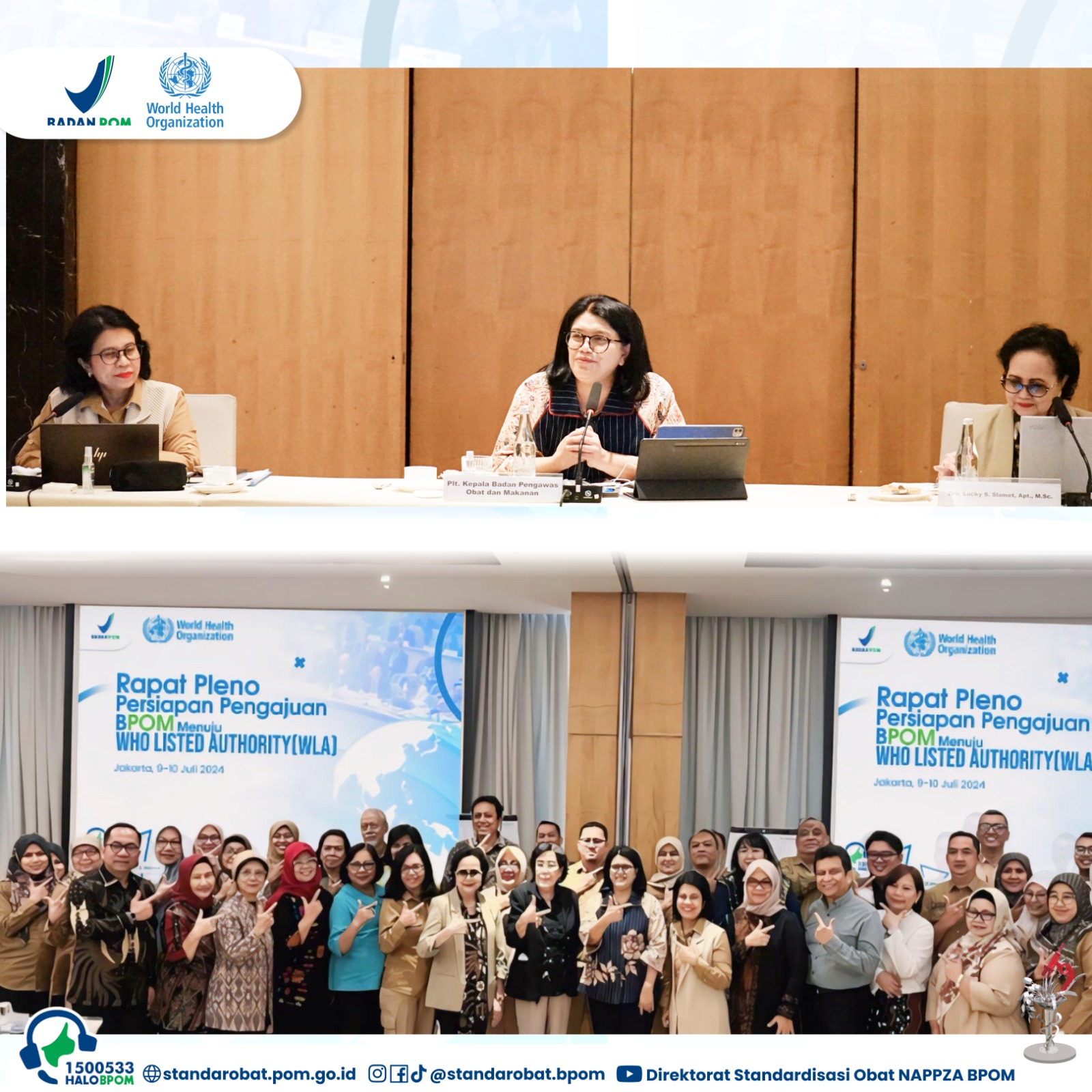 Jakarta -BPOM menggelar Rapat Pleno dalam rangka persiapan pengajuan BPOM menuju WHO Listed Authority (WLA) pada 9-10 Juli 2024 bersama para pakar di bidang pengawasan obat. Rapat pleno dilakukan untuk meriviu hasil self-assessment terhadap 9 fungsi yang akan dinilai dalam WLA bersama unit internal terkait di BPOM, UPT seluruh Indonesia dan para pakar di bidang pengawasan obat. WLA merupakan suatu framework yang transparan dan berbasis bukti untuk menilai dan menetapkan regulatory authorities yang masuk ke dalam daftar negara yang memiliki kinerja advance untuk diakui secara global. Seluruh otaritas obat seperti BPOM, di dunia ini kinerjanya dipantau oleh WHO.