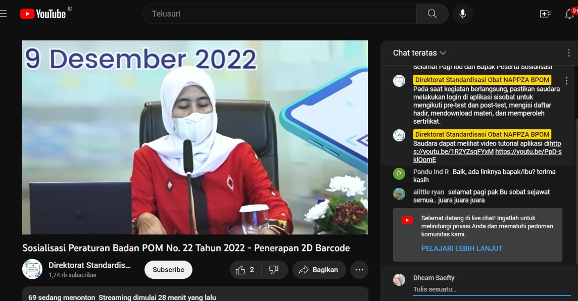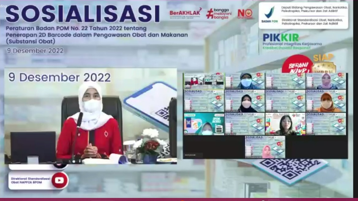 | SOSIALISASI PERATURAN BADAN POM NOMOR 22 TAHUN 2022 TENTANG PENERAPAN 2D BARCODE DALAM PENGAWASAN OBAT DAN MAKANAN (SUBSTANSI OBAT) |