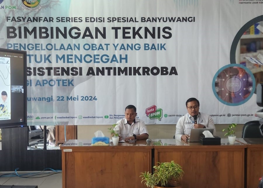 Banyuwangi, Jawa Timur - Direktorat Standardisasi Obat NPPZA memberikan Edukasi dan Survei Penggunaan e-Labeling Obat bersamaan dengan kegiatan Bimbingan Teknis Cara Pengelolaan Obat yang Baik pada 22 Mei 2024. Kegiatan ini dilaksanakan atas kolabora -