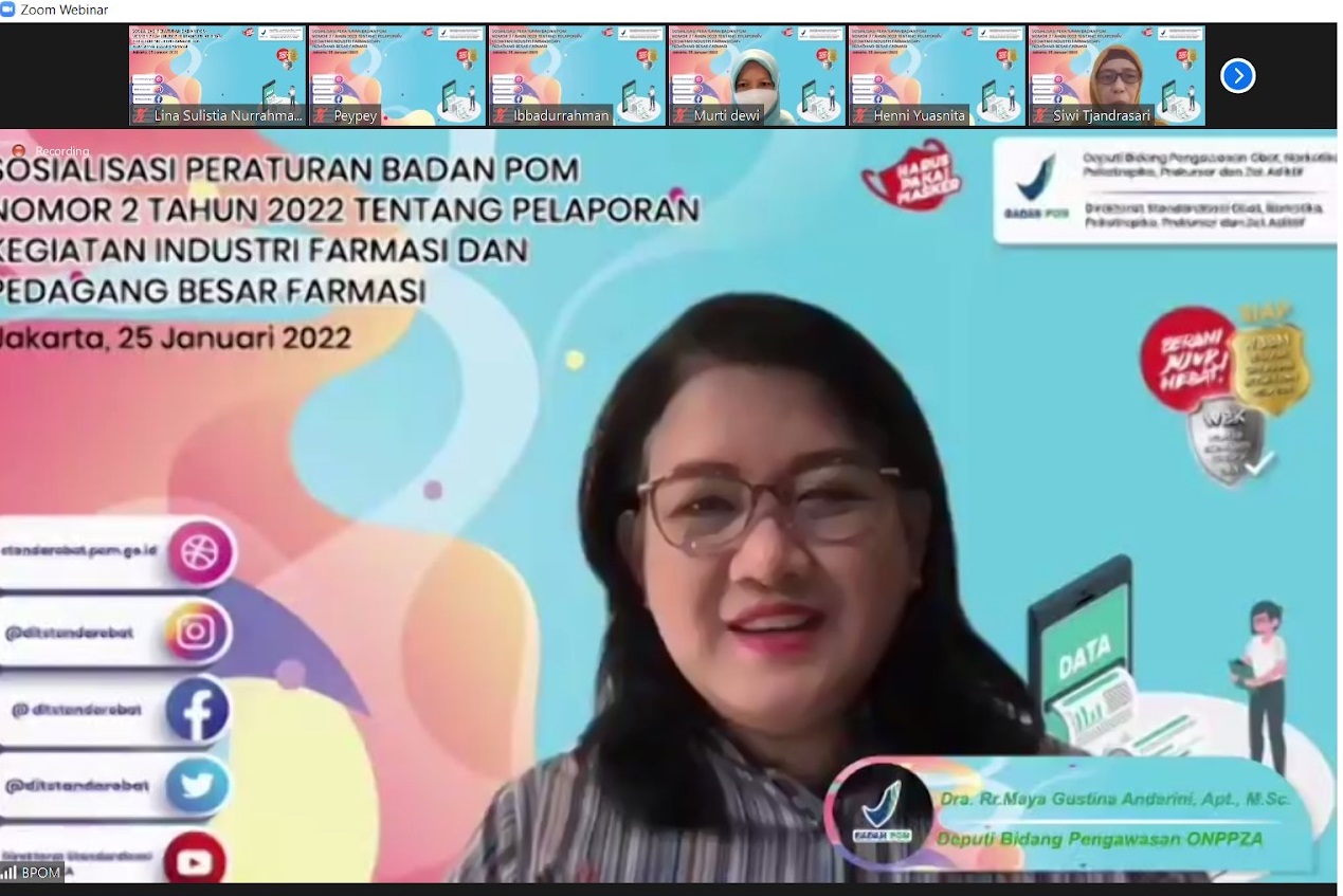 Jakarta – Direktorat Standardisasi Obat, Narkotika, Psikotropika, Prekursor, dan Zat Adiktif telah melaksanakan kegiatan Sosialisasi Peraturan Badan POM Nomor 14 Tahun 2022 tentang Penarikan dan Pemusnahan Obat yang Tidak Memenuhi Standar dan/atau -
